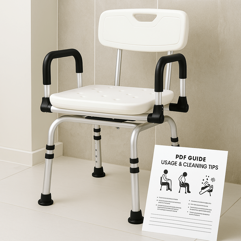 Seniors and caregivers prioritize safety, independence, and ease of use. Unlike rigid shower stools, this chair’s 360° rotation and adjustable height eliminate risky twists or strains when sitting. The tool-free assembly and lightweight frame save time, while the hospital-grade durability ensures long-term value.